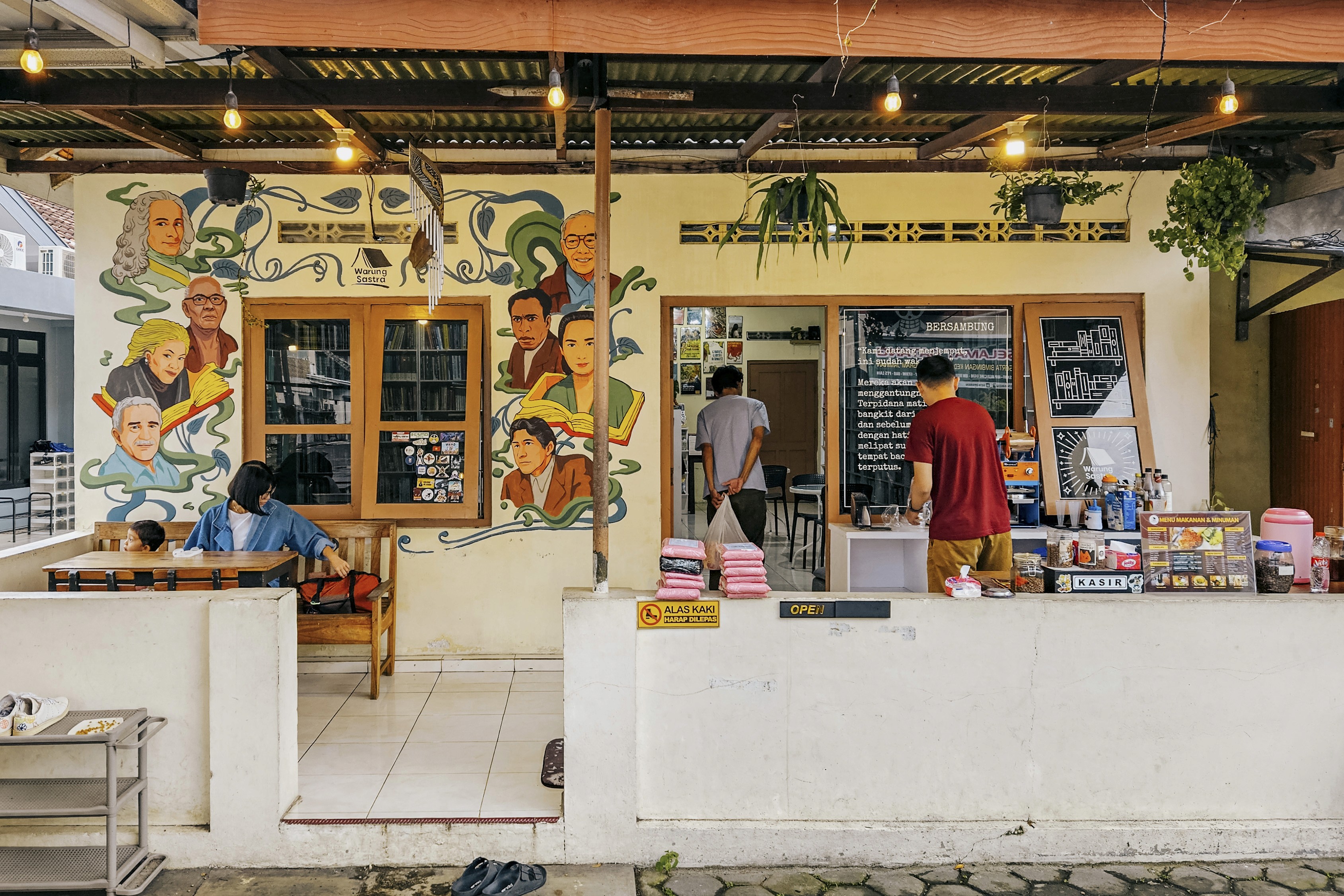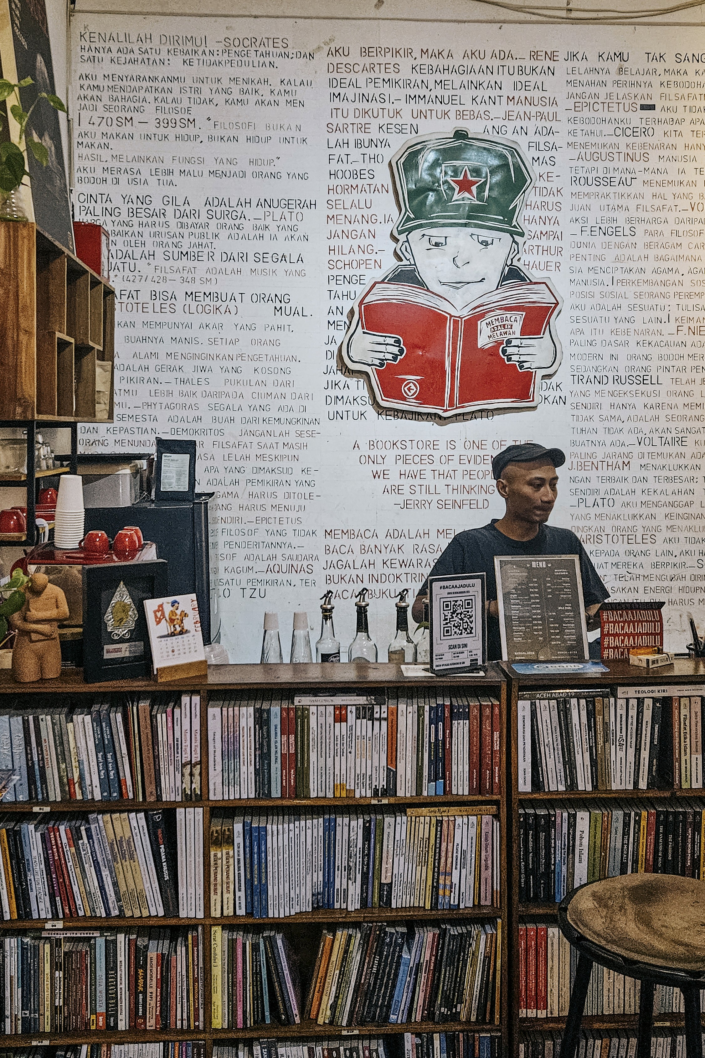 Then there’s Berdikari Book, which has built a reputation as a leftist book sanctuary. Its facade is decorated with murals of Che Guevara, Fidel Castro and Indonesian Marxist philosopher Tan Malaka, alongside manifestos that position reading as a mandatory weapon for everyone.