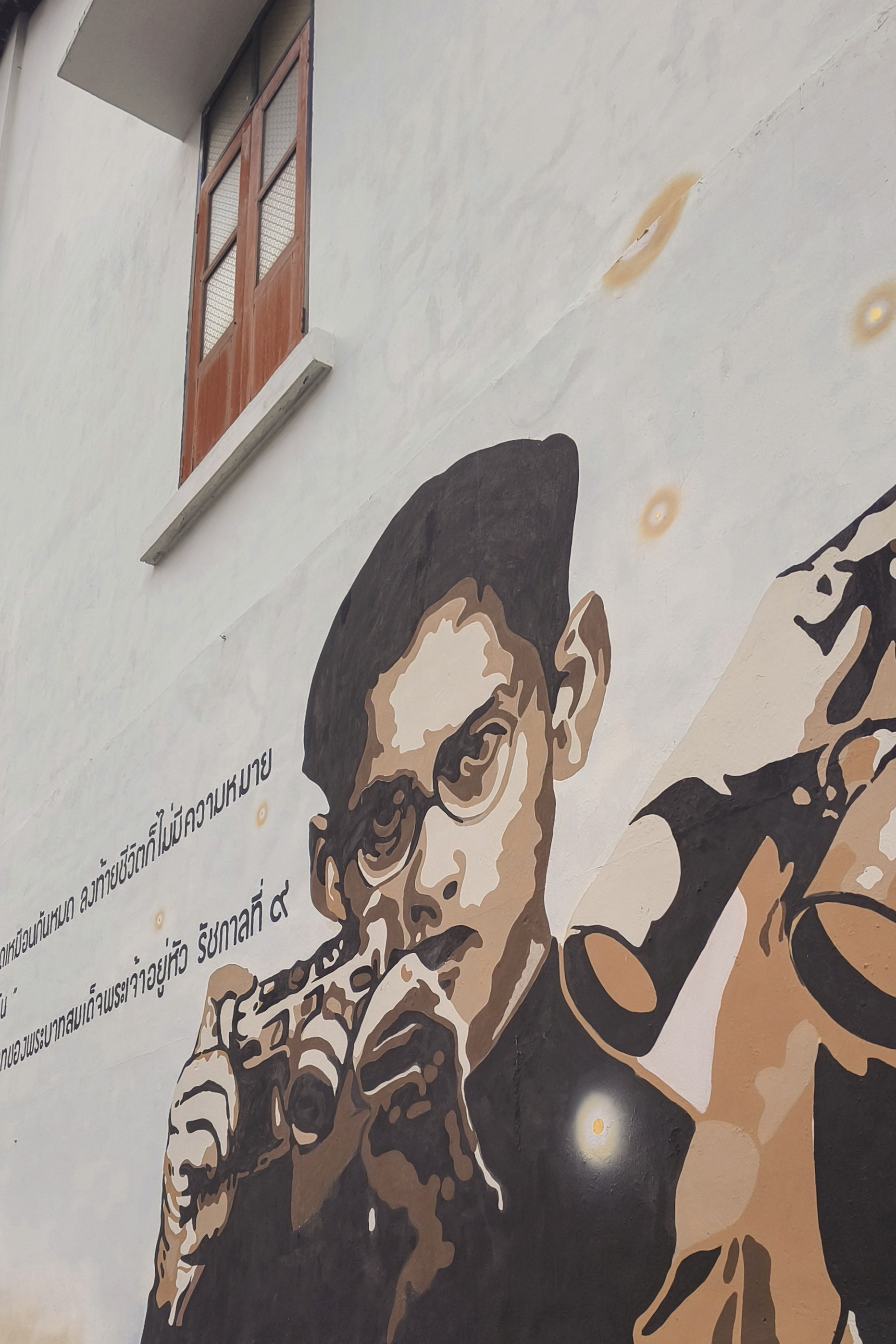 One of the most moving murals stands directly across from Aikwanich Mansion, an emotive tribute to His Majesty King Bhumibol Adulyadej.