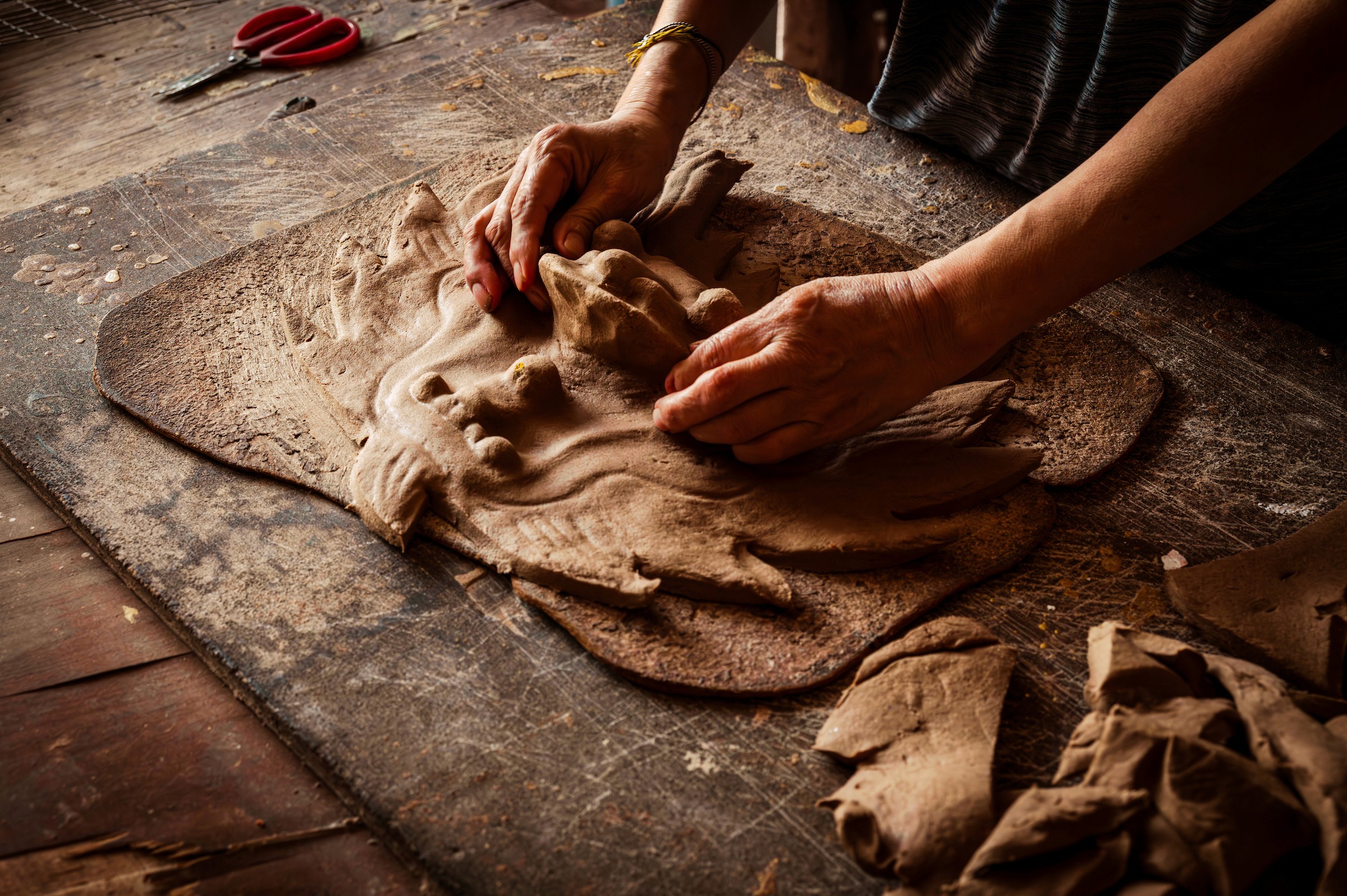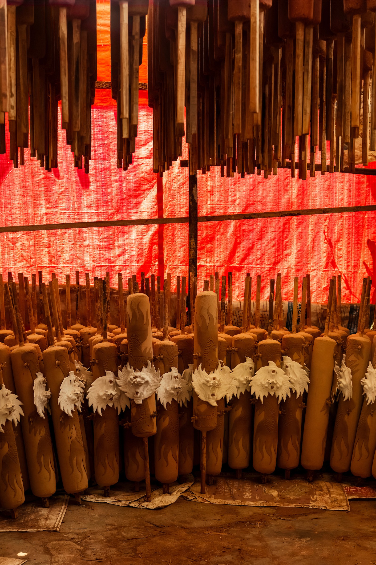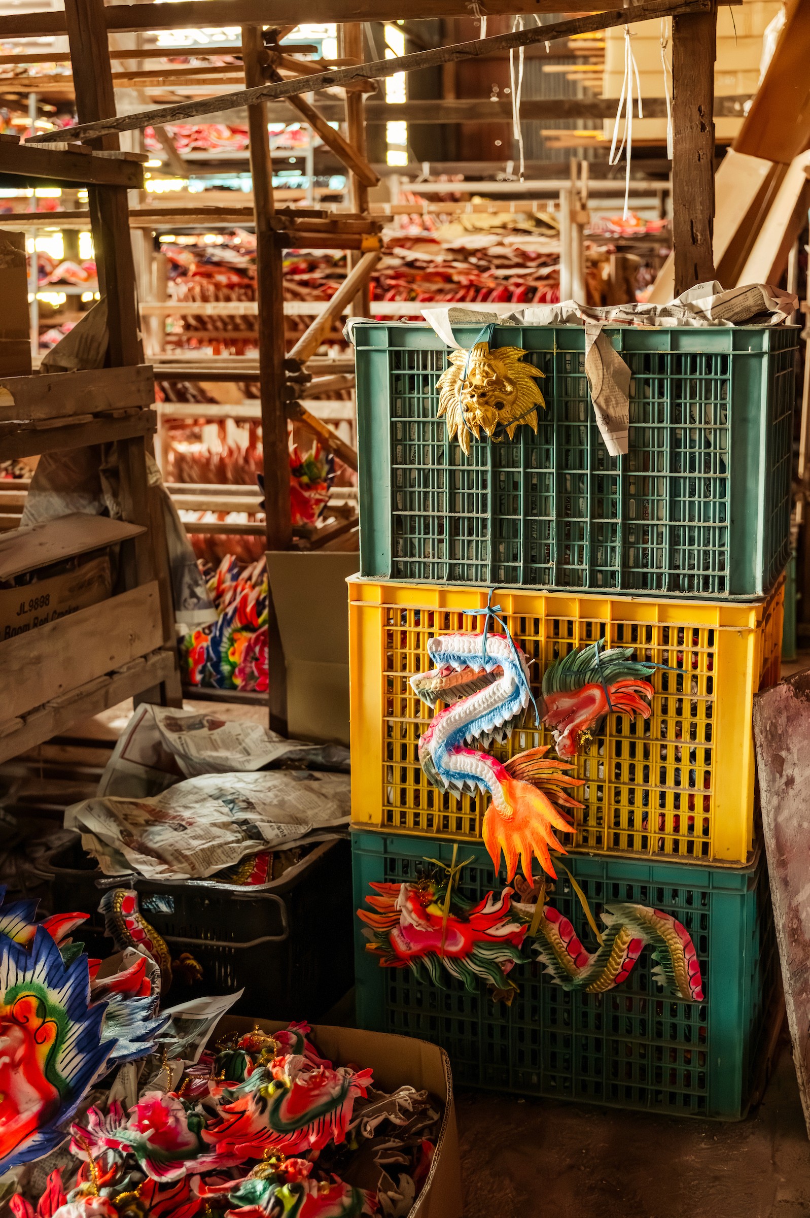 At the heart of the workshop lies its most expressive and intricate craft. Sheets of clay are hand-shaped into dragons whose bodies are then twisted and coiled around single, giant joss sticks. So ornate and vibrant are the creatures that each seems to hiss and breathe as they are wrapped around the cylinders.