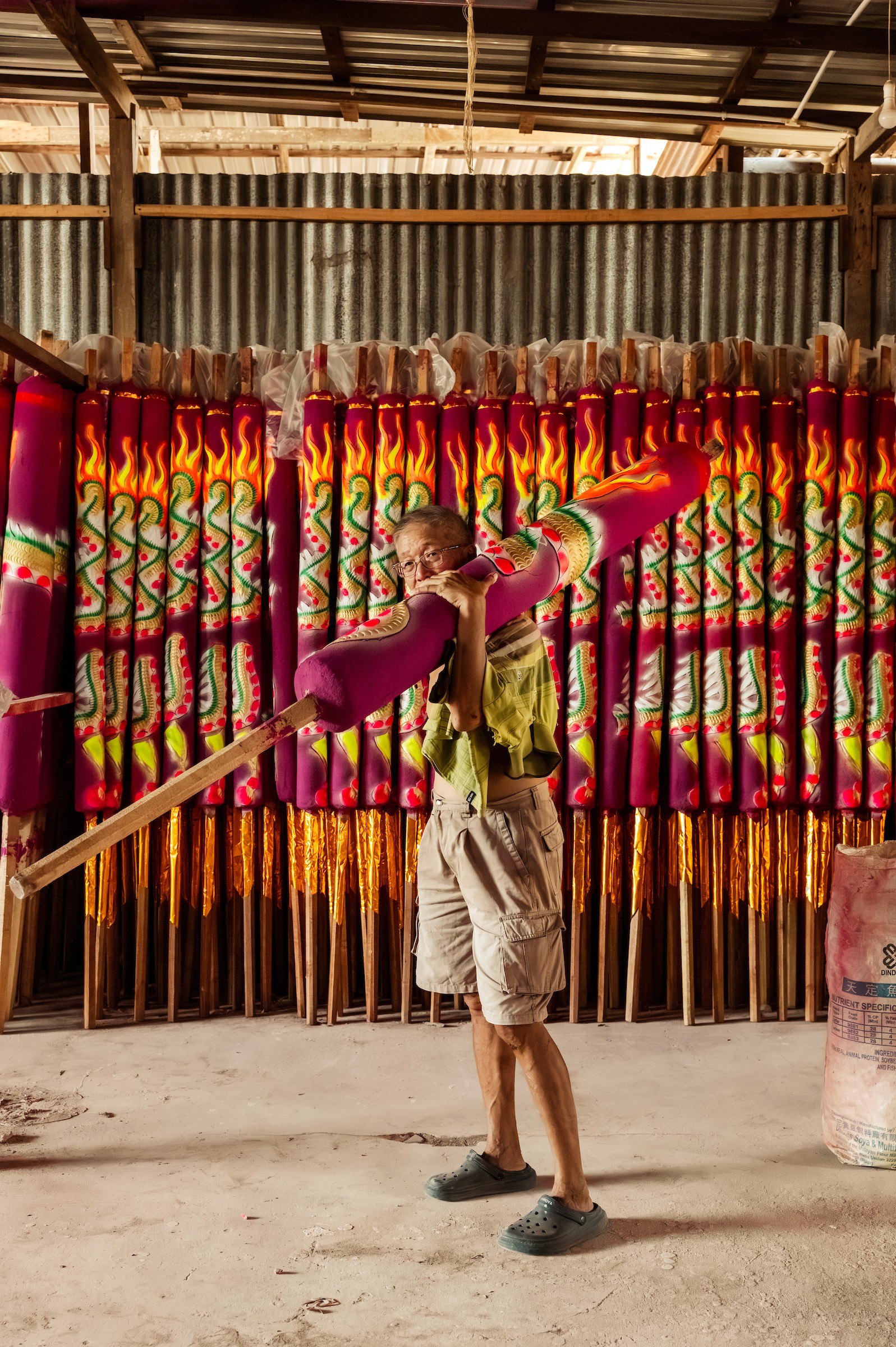 I’m drawn to stories that slip past the spotlight so I felt an urgency to photograph this place, knowing that there are few practitioners left – and even fewer spaces where the full process still exists under one roof. Visually, I found the process compelling in a very tactile way: the textures of incense dust, the aroma, the deep magenta of the finished sticks and the sculpted dragons conveying a sense of quotidian labour and grand ceremony at the same time.