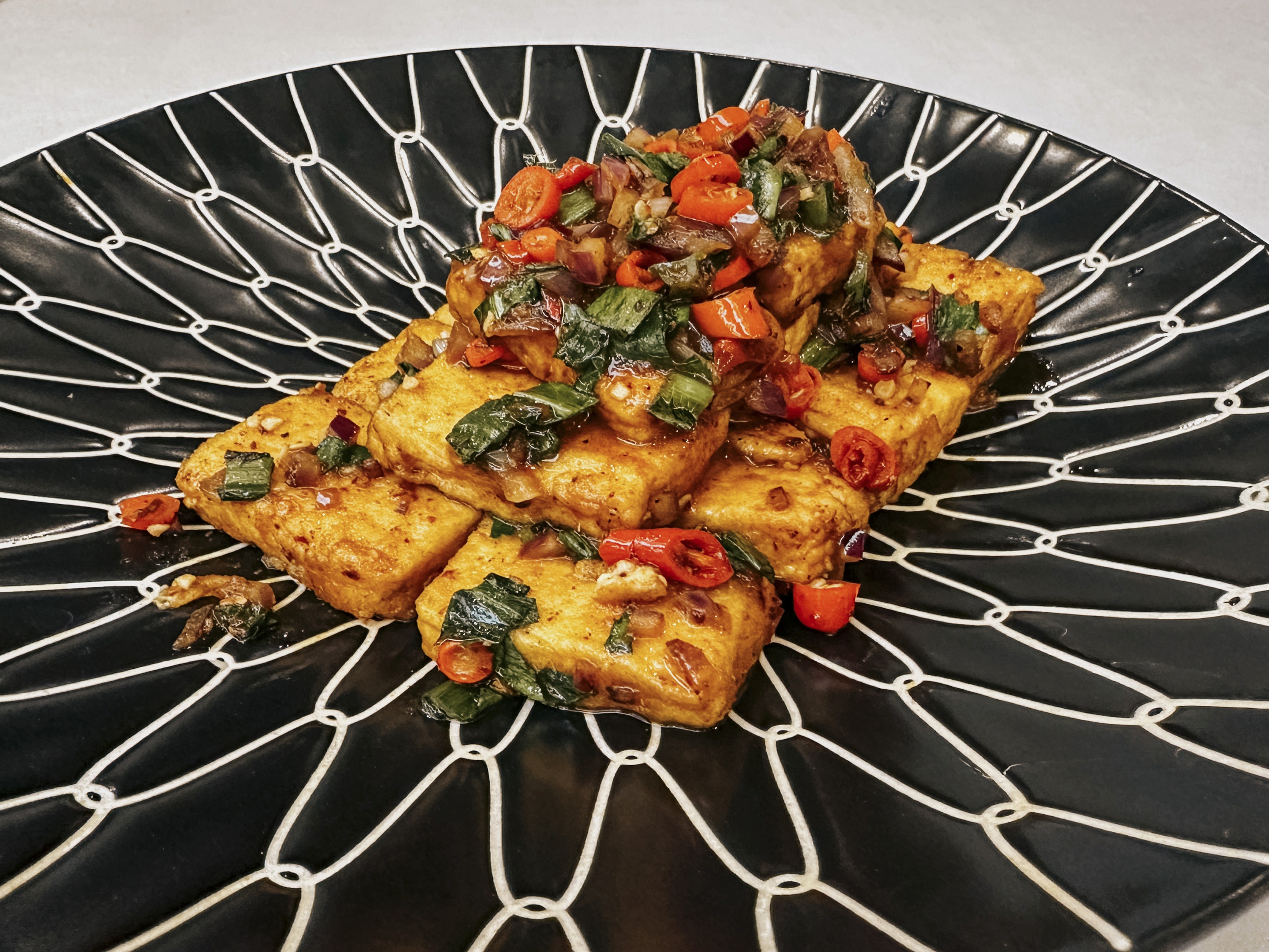This is perhaps the most peculiar zhujingban, with one chef from the southwestern city of Bijie and another from eastern coastal Taizhou, my hometown. Don’t miss the fish from both regions: river catch boils in hearty fermented tomato soup, while tender deep-sea tofu fish is delicately fried and tumbled in pepper salt. Challenge your palate with a “fishy grass” salad, or top off the meal with a shibingtong, our veggie-filled take on a burrito.