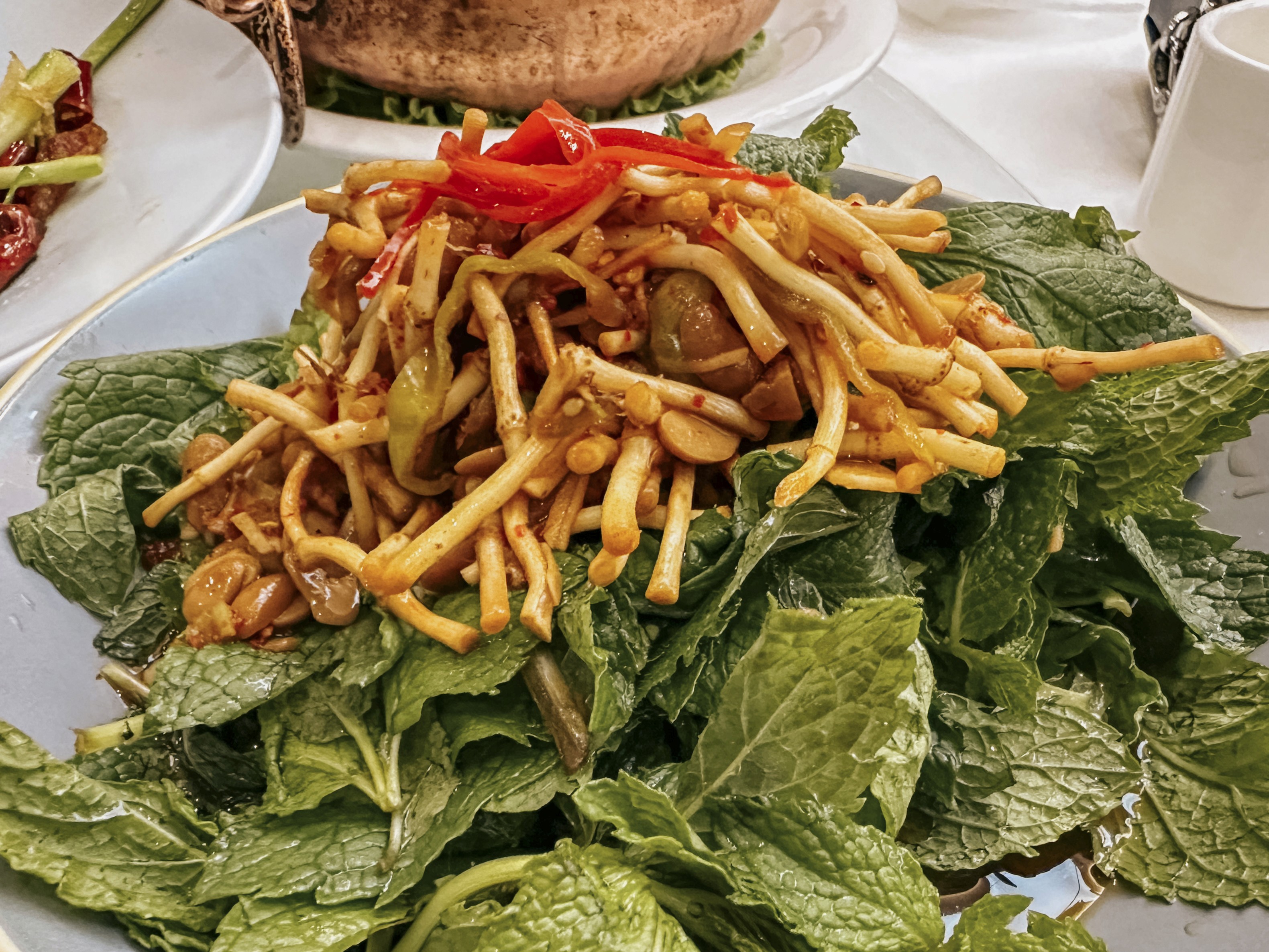 Repping a region with vast ethnic and bio diversity, this restaurant serves classics like semi-dried beef fried with mint; herb-stuffed grilled tilapia; and mushroom types that are unique to the region. Pair the dishes with rice infused with ham and potatoes, or sink your sweet tooth into the “milk fan”, a sun-dried sheet of dairy paired with rose jam, common in ethnic Bai cuisine.